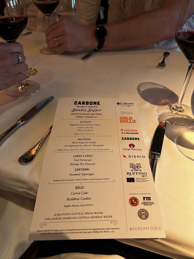 Welcome to Carbone, a distinguished Italian seafood restaurant located at 49 Collins Ave, Miami Beach. Renowned for its chic ambiance and upscale dining experience, Carbone is the perfect spot for both intimate dinners and group celebrations. The outdoor seating offers a delightful setting, making it ideal for a night out, especially on Thursdays, when the atmosphere truly shines.